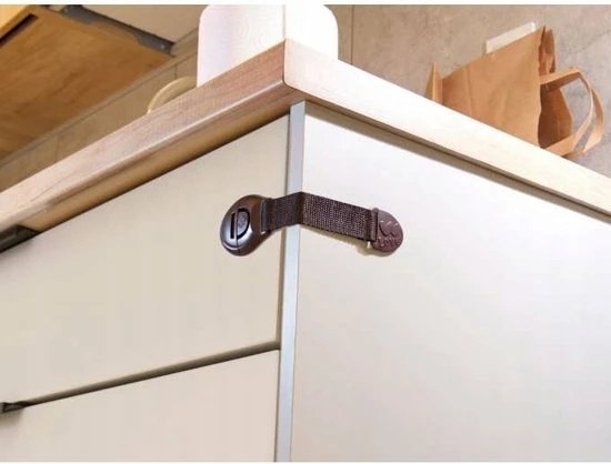 Alleen een volwassene heeft toegang tot het meubel, de clip moet op de juiste plaats worden ingedrukt. De grendel komt los en de lade of deur kan worden geopend. Zorg ervoor dat u na het openen de zekering weer in elkaar zet, dit is de enige manier om de bescherming te behouden. De veiligheidsriem beschermt niet alleen de kleine vingers tegen onbedoeld knijpen. Het is ook een ideale bescherming tegen het volledig openen van meubels die gevaarlijke voorwerpen bevatten. Het systeem is ook geschikt voor het vastzetten van voorwerpen achter deuren wanneer er dieren in het huishouden leven. Kleding- of schoenenrekken kunnen worden vastgezet en u kunt alleen toegang krijgen tot de objecten erachter door op de clip te drukken.
