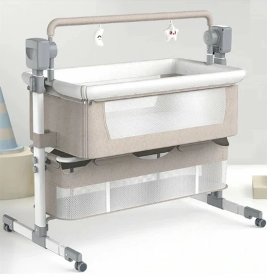 Deze elektrische co-sleeper is makkelijk en veilig aan beide kanten van uw bed te monteren. De co-sleeper help uw baby om makkelijk in slaap te vallen, in nabijheid van mama of papa.