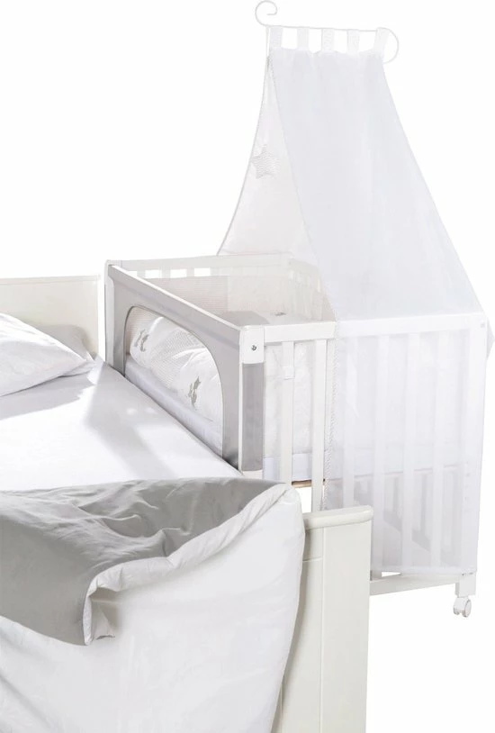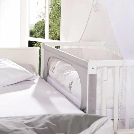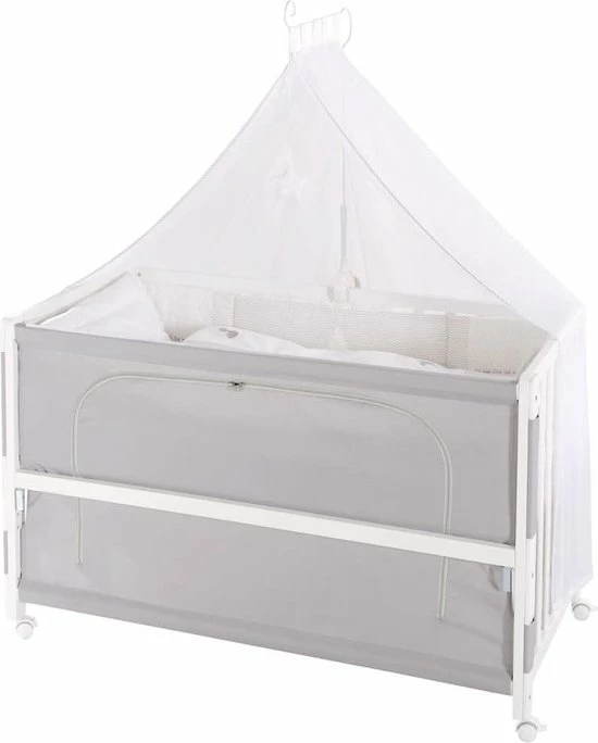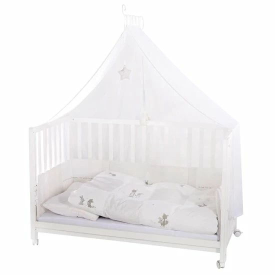 De Fox & Bunny ledikant/co-sleeper van Roba kan gebruikt worden vanaf de geboorte van jouw baby. De lattenbodem kan in 6 verschillende hoogtestanden gezet worden. Het ledikantje kan eenvoudig met de meegeleverde metalen beugels als co-sleeper gemonteerd worden om samen te kunnen slapen. Onder het bed zitten vier wielen zo verplaats je hem gemakkelijk van ruimte naar ruimte. De wielen kunnen op de rem gezet worden.
