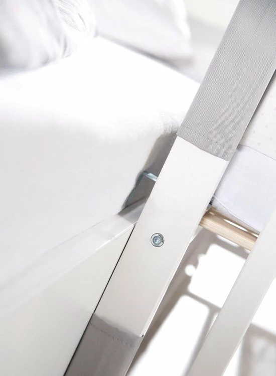 De textiele onderdelen van de wieg zijn gemaakt van 100% katoen met een polyestervulling. De katoenen bekleding kan gemakkelijk gewassen worden, maar trek altijd het beddengoed links zodat de kleur lang behouden blijft. Voor het reinigen van het ledikant wordt aanbevolen om een vochtige doek te gebruiken.