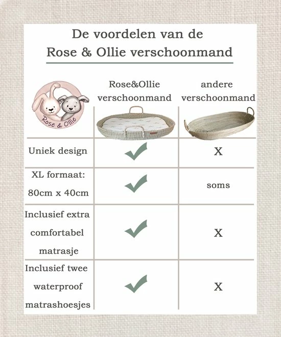Door de mooie kleuren en natuurlijke uitstraling, maak je zelf de mooiste foto’s van jouw baby in de verschoonmand van Rose&Ollie.