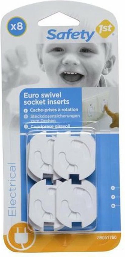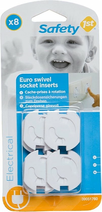 Met deze witte stopcontactbeveiligers van Safety 1st kan je kindje niet met zijn vingers in het stopcontact zitten. De beveiligers kunnen gemakkelijk op het stopcontact worden geplakt. Het stopcontact kan gebruikt worden zonder de beveiligers te verwijderen door simpelweg de beveiliger 45 graden te draaien, waardoor de gaatjes van het stopcontact zichtbaar worden. Bij het verwijderen van de stekker sluit de beveiliging automatisch. Deze beveiligers zijn geschikt voor alle Nederlandse en Duitse stopcontacten, met uitzondering van de stopcontacten die worden gebruikt voor apparaten die veel stroom gebruiken, zoals wasmachines. In de verpakking zitten 8 stuks. Niet alle stopcontacten in huis hoeven beveiligd te worden. Beveilig stopcontacten op plaatsen waar uw kind vaak komt ??n makkelijk bij kan. Dit zijn vooral de stopcontacten in de slaap- en woonkamer. Afdekplaatjes worden op het stopcontact vastgeplakt of geklemd. Het afdekplaatje heeft een veermechanisme dat het plaatje meteen voor de openingen draait als de stekker uit de contactdoos wordt getrokken. De plaatjes hoeven dus niet verwijderd te worden, als u het stopcontact gebruikt.