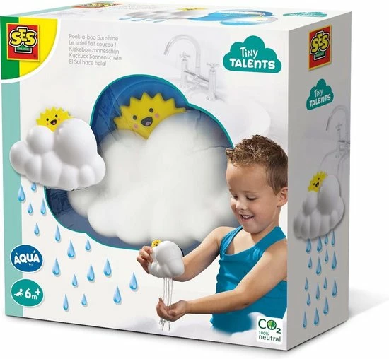 Met dit leuke badspeelgoed van SES Tiny talents kan je eindeloos blijven spelen. Vul het wolkje met water en laat het regenen. Maar wat gebeurt er als de wolk leeg is? Dan komt de zon tevoorschijn! Want na regen komt zonneschijn!