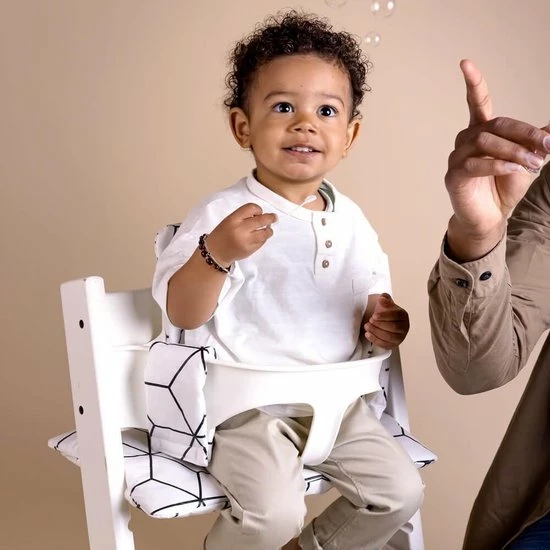 Een eyecatcher in je eethoek! En heerlijk zacht om op te zitten! Met deze mooie stoelverkleiner voor je TrippTrapp kan jouw kleintje gezellig meetafelen!