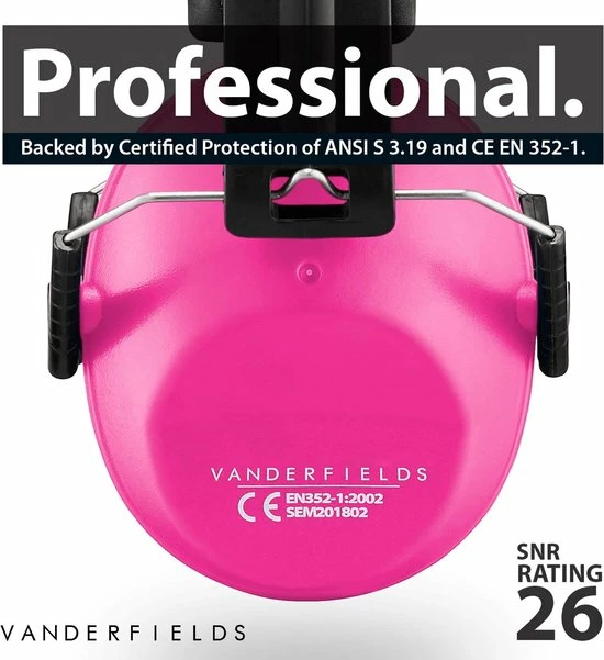 Sommige brands zijn niet, of niet volledig, gecertificeerd. Vanderfields is gecertificeerd volgens de CE EN352-1 richlijnen met een SNR van 26dB. Daarnaast voldoen we aan de Amerikaanse ANSI S3.19 Richtlijnen met een NRR van 20dB.