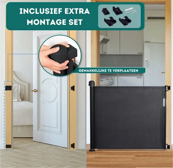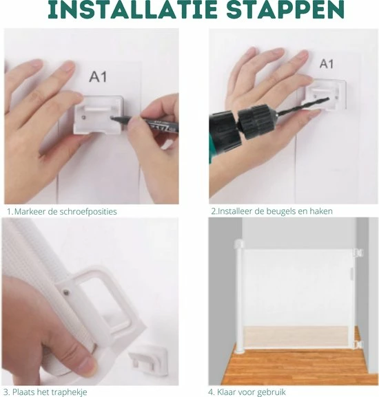 Het traphekje kan gemakkelijk bevestigd worden in deur of trap openingen en heeft een maximale breedte van maar liefst 140 cm, waardoor deze ook zeer zeker geschikt is voor de wat bredere openingen. Wordt geleverd met bevestigingsmateriaal en afteken papier van de schroef positie waardoor het traphekje binnen enkele ogenblikken al klaar is voor gebruik!