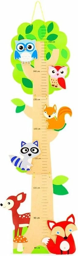 Houten groeimeter, een winst voor in de kinderkamer! Gedecoreerd met dieren uit het bos.