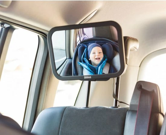 Vind gemoedsrust achter het stuur, rijd veilig en houd toch oogcontact met uw kind. Met deze unieke autospiegel is het mogelijk om te weten hoe uw kind zich voelt tijdens het autorijden. De extra grote autospiegel heeft een bolle spiegel en zorgt zo voor een uitstekend zichtbereik. De autospiegel kan eenvoudig op de hoofdsteun worden gemonteerd dankzij het dubbele bevestigingssysteem met draai- en zwenkfunctie, bestaande uit twee bevestigingsriemen.